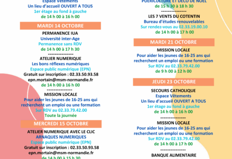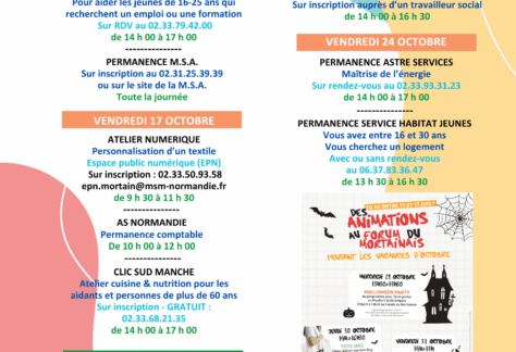 Agenda « L’actu du Forum du Mortainais » du 13 au 24 octobre 2025