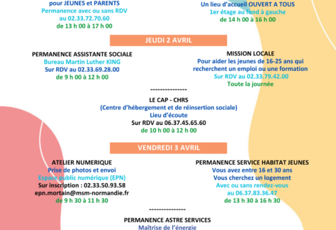 DES ANIMATIONS AU FORUM DU MORTAINAIS (Tu as entre 11 et 17 ans ?) Posted on30/03/2026AuthorKarine JOUENNE