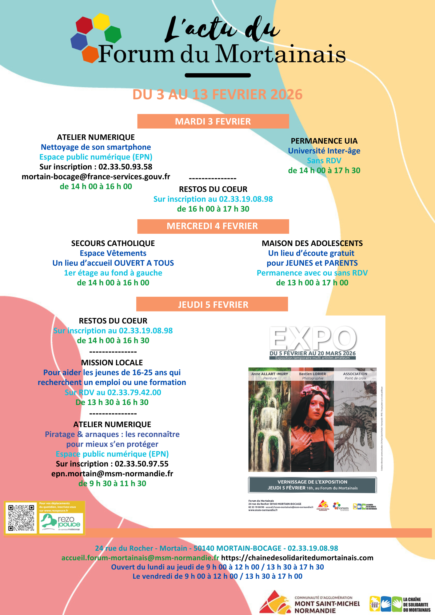 Agenda « L’actu du Forum du Mortainais » du 3 au 13 février 2026