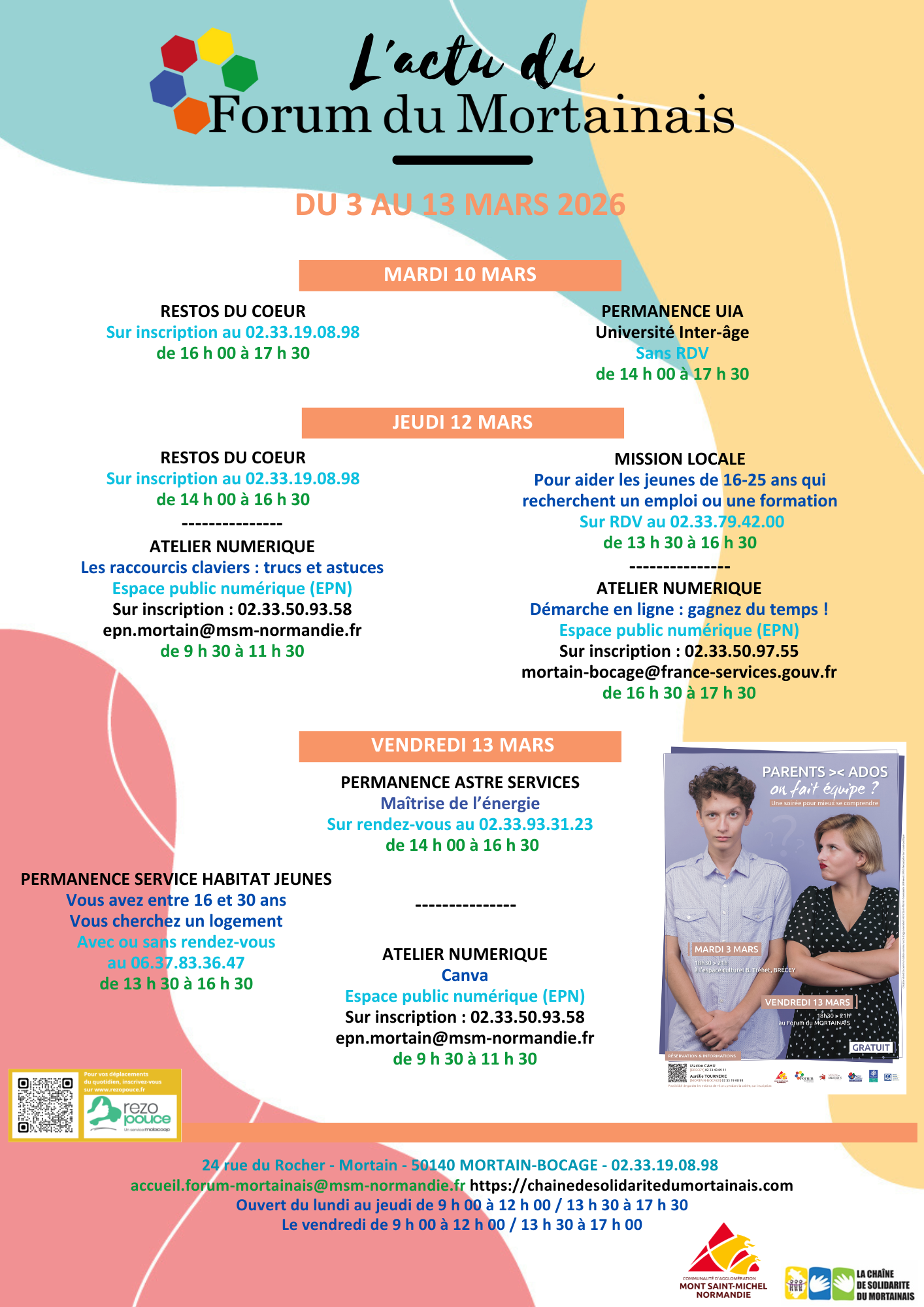 Agenda « L’actu du Forum du Mortainais » du 3 au 13 mars 2026 + Ajouter à mon Agenda Google + iCal / Outlook export L'événement est terminé. agenda mars 2026 L M M J V S D 1 2345678 9101112131415 16171819202122 23242526272829 3031 « Fév Date 28 Fév 2026 - 13 Mar 2026 Expired! Heure 08:00 - 18:00 Heure Locale Fuseau Horaire : America/New_York Date : 28 Fév 2026 - 13 Mar 2026 Heure : 02:00 - 12:00 Partagez cet événement