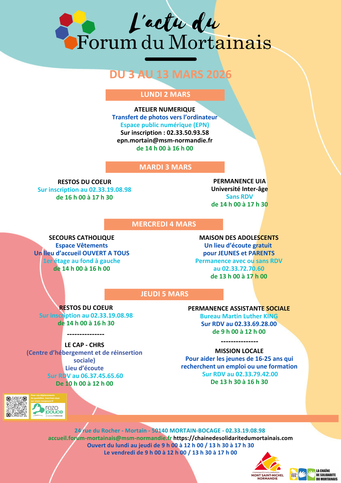 Agenda « L’actu du Forum du Mortainais » du 3 au 13 mars 2026 + Ajouter à mon Agenda Google + iCal / Outlook export L'événement est terminé. agenda mars 2026 L M M J V S D 1 2345678 9101112131415 16171819202122 23242526272829 3031 « Fév Date 28 Fév 2026 - 13 Mar 2026 Expired! Heure 08:00 - 18:00 Heure Locale Fuseau Horaire : America/New_York Date : 28 Fév 2026 - 13 Mar 2026 Heure : 02:00 - 12:00 Partagez cet événement